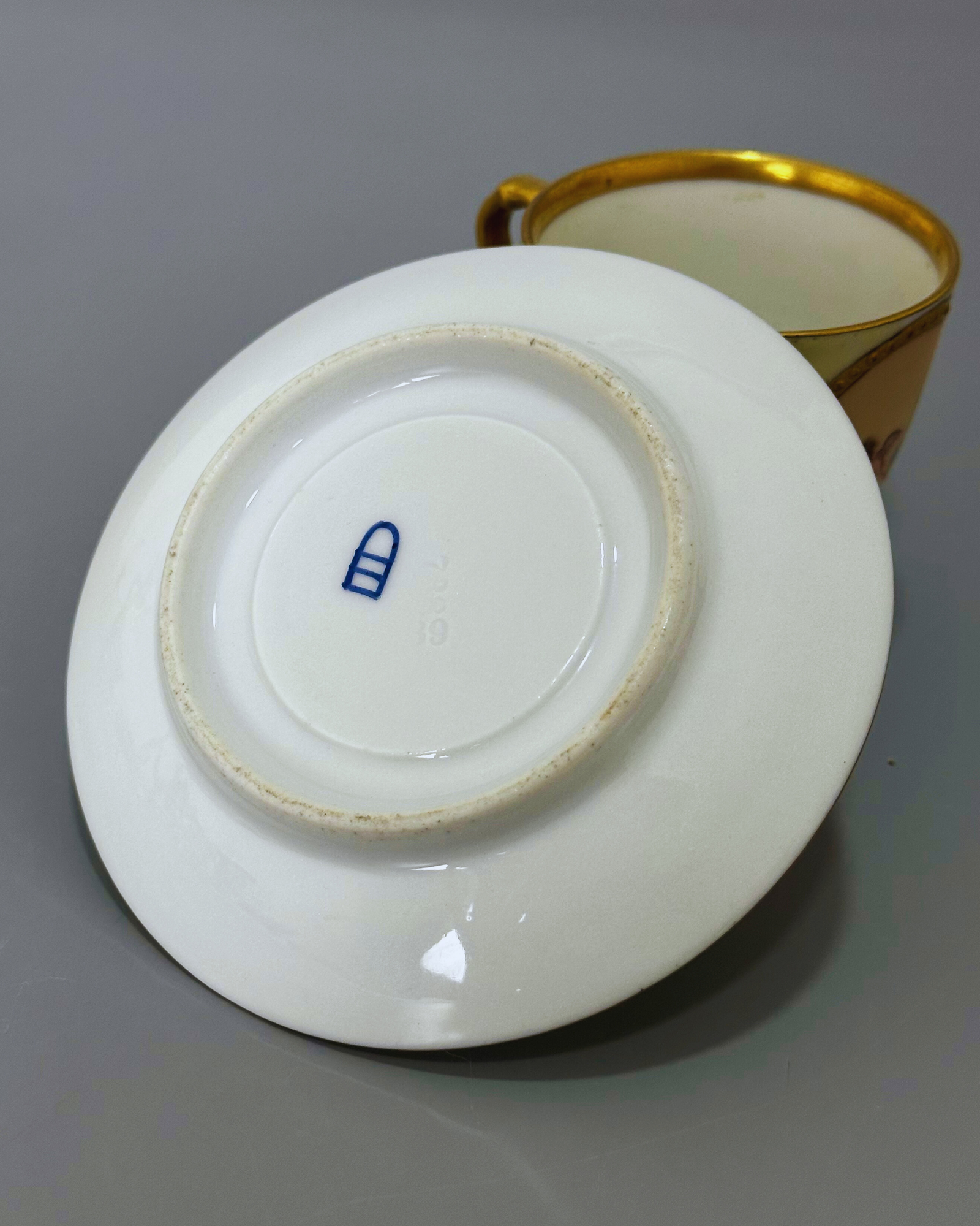 Bu zarif fincan, Avusturya porselen sanatının en göz alıcı örneklerinden biridir. Gövdesinde yer alan el boyama Cupid (Roma mitolojisinde aşk tanrısı) sahnesi, romantizmin en saf ifadesini sunarken; çevresini saran yükseltilmiş altın süslemeler ve mine işçilik, parçayı adeta bir mücevher haline getiriyor. Fincanın zarif ayak formu ve tabağındaki detaylı bezemeler, 19. yüzyıl Avusturya atölyelerinin incelikli estetik anlayışını yansıtır. Hem koleksiyon değeri yüksek hem de sanatsal açıdan özel bir başyapıt…